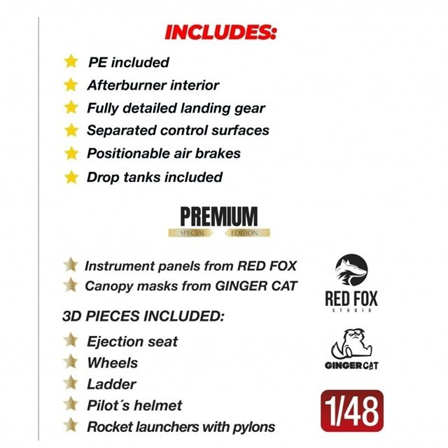 - Conjunto de resina impressa em 3D composto por assento ejetor, dois lançadores de foguetes com postes, uma escada e um capacete de piloto.
